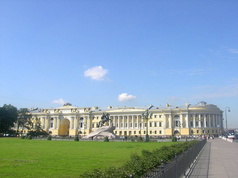 Сенатская площадь начала формироваться в 1704 году, первоначально как часть гласиса при крепости и верфи Адмиралтейства. Но вскоре Адмиралтейство потеряло своё значение как крепость, этот участок гласиса принял значение городской площади. В 1710 году построили первое деревянное здание Исаакиевской